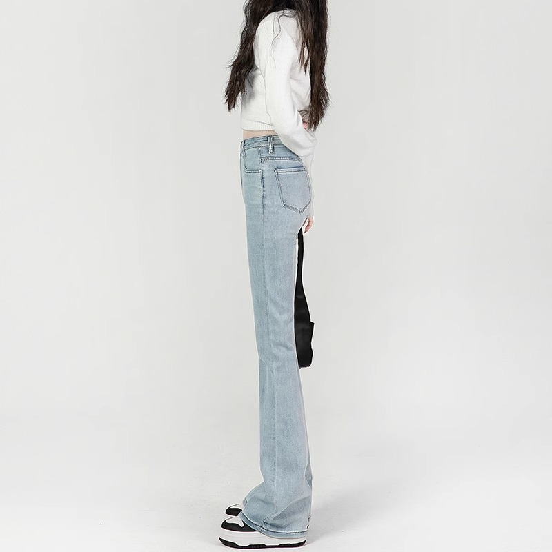 Light Blue Slightly Flared High Waist Slimming Mopping Jeans