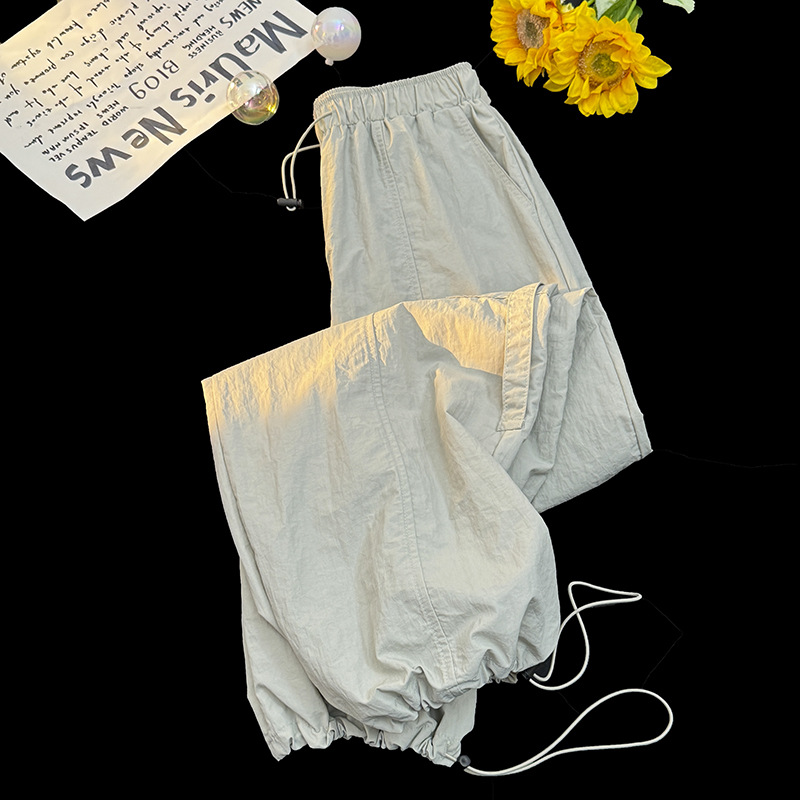 Drawstring Overalls Women's Summer Loose Cuffed Parachute Pants Quick-drying Wide-leg Pants
