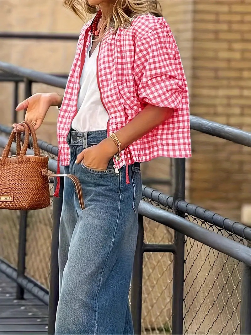 Plaid Short Coat Jacket Loose Baseball Jacket