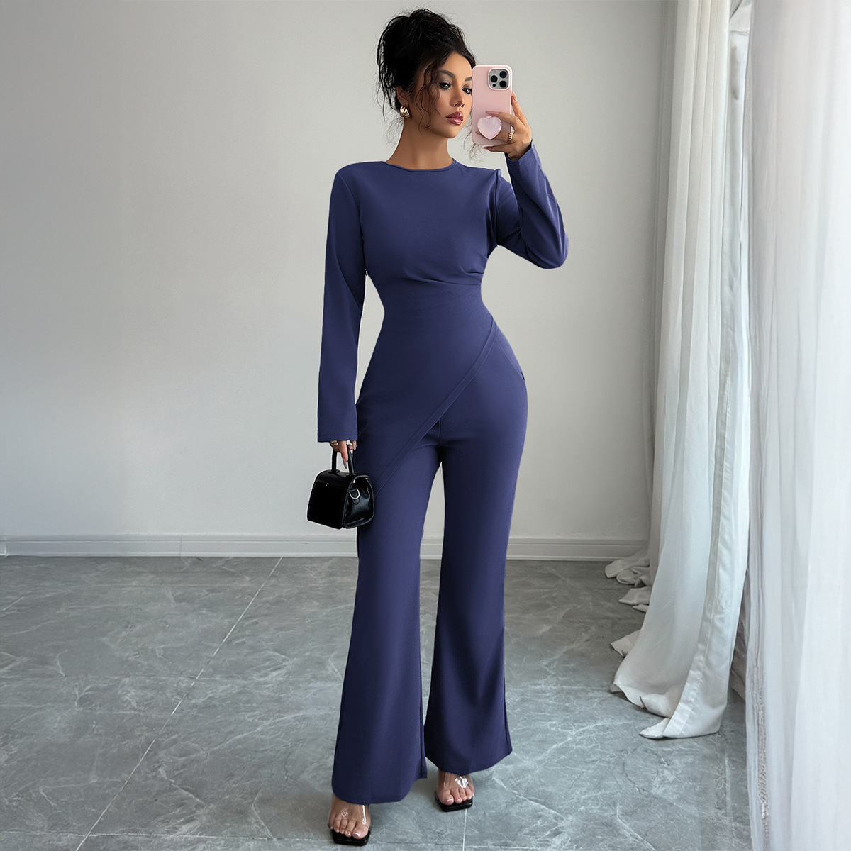 Commute Leisure Diagonal Collar Stitching High Waist Trousers Long Sleeve Two-piece Set
