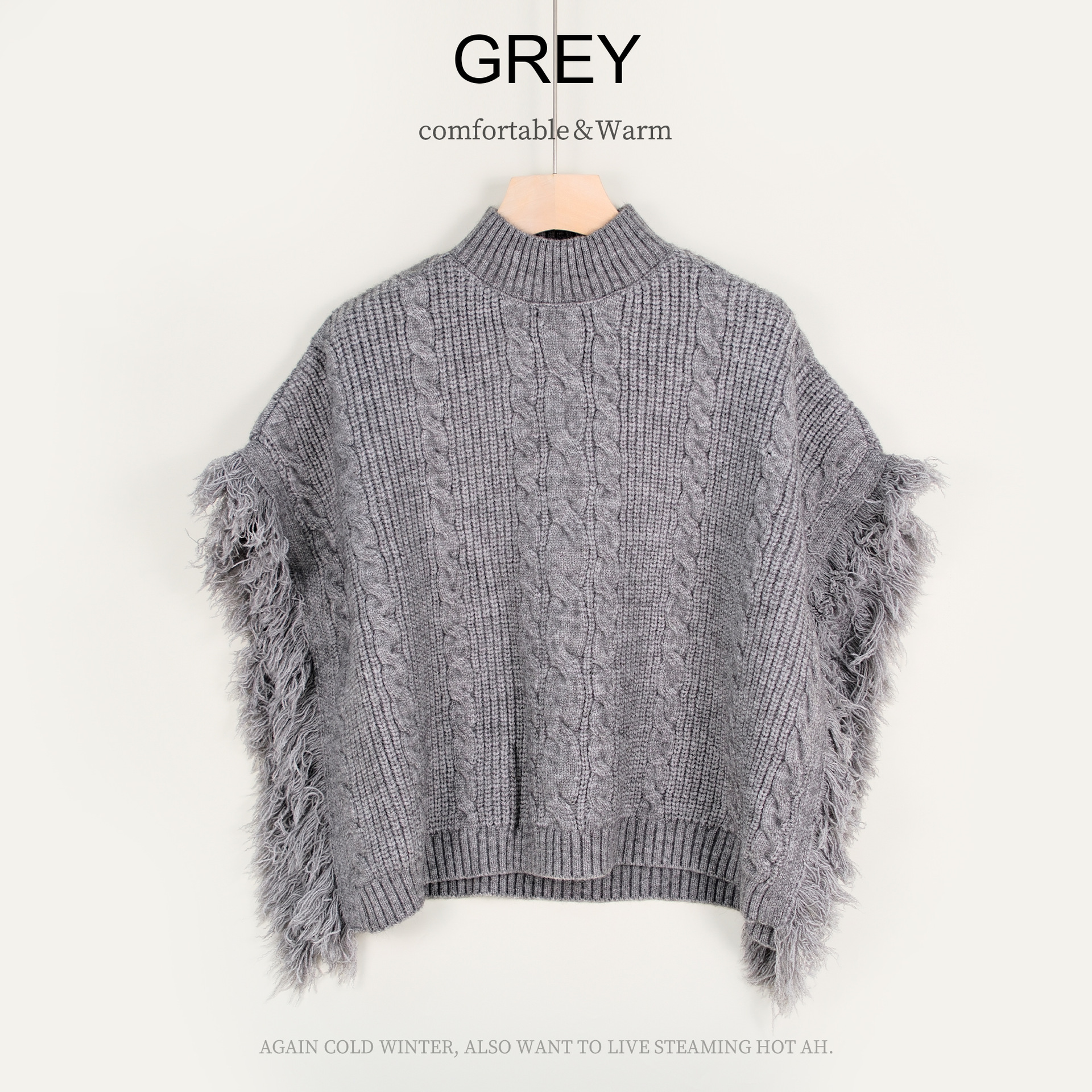 Semi-high Stand Collar Knitted Wool Tassel Half Sleeve Cape