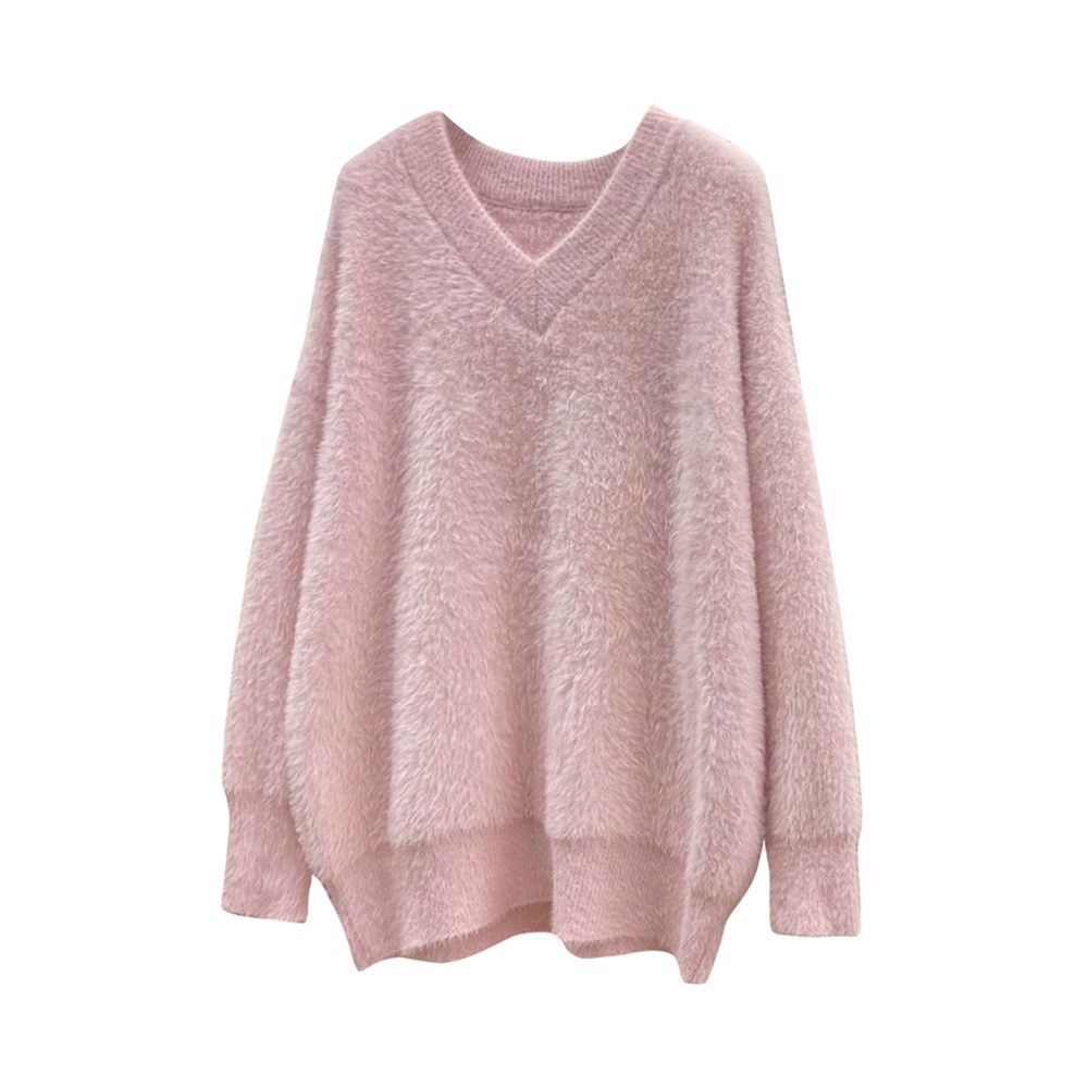 New Gentle Soft Glutinous Sweater Women’s V-neck Imitated Mink