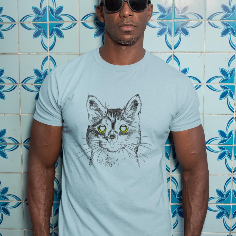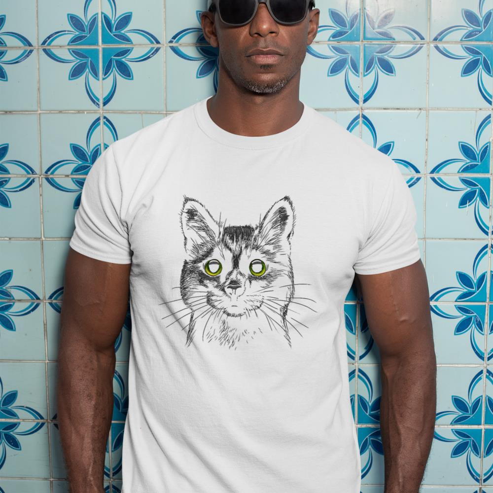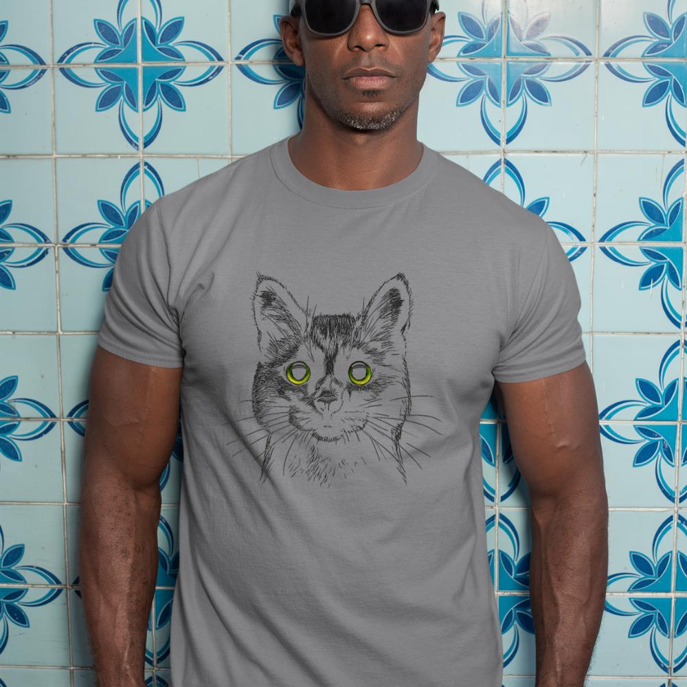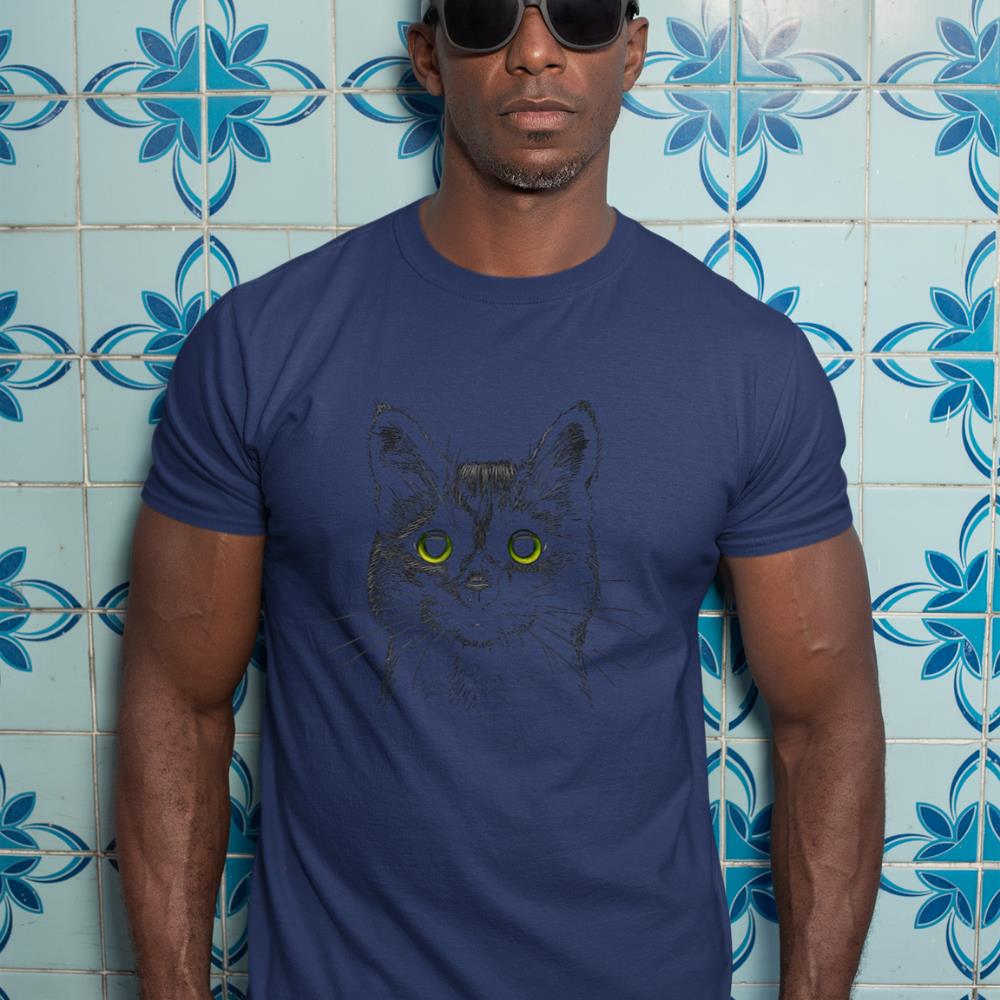 Black Cat Face Green Eyes Graphic Art Funny Cat Lover Gifts T-Shirt