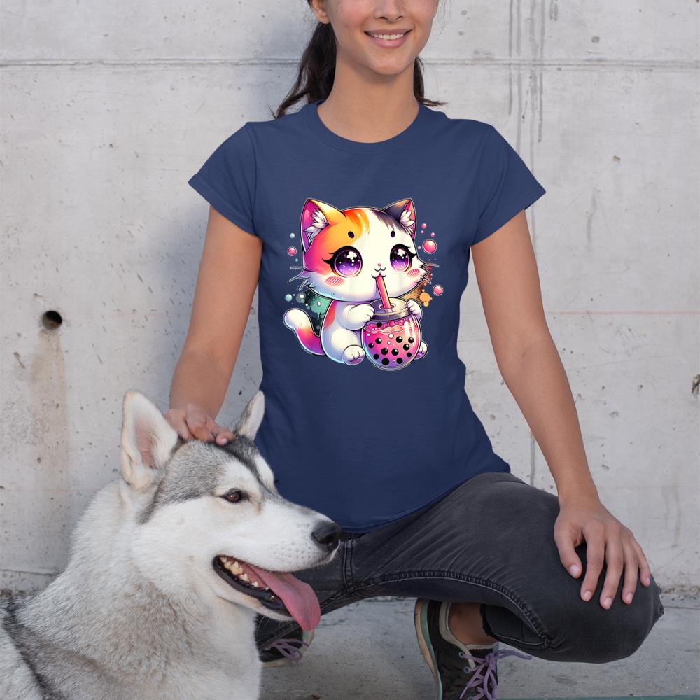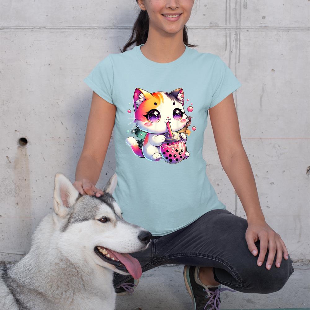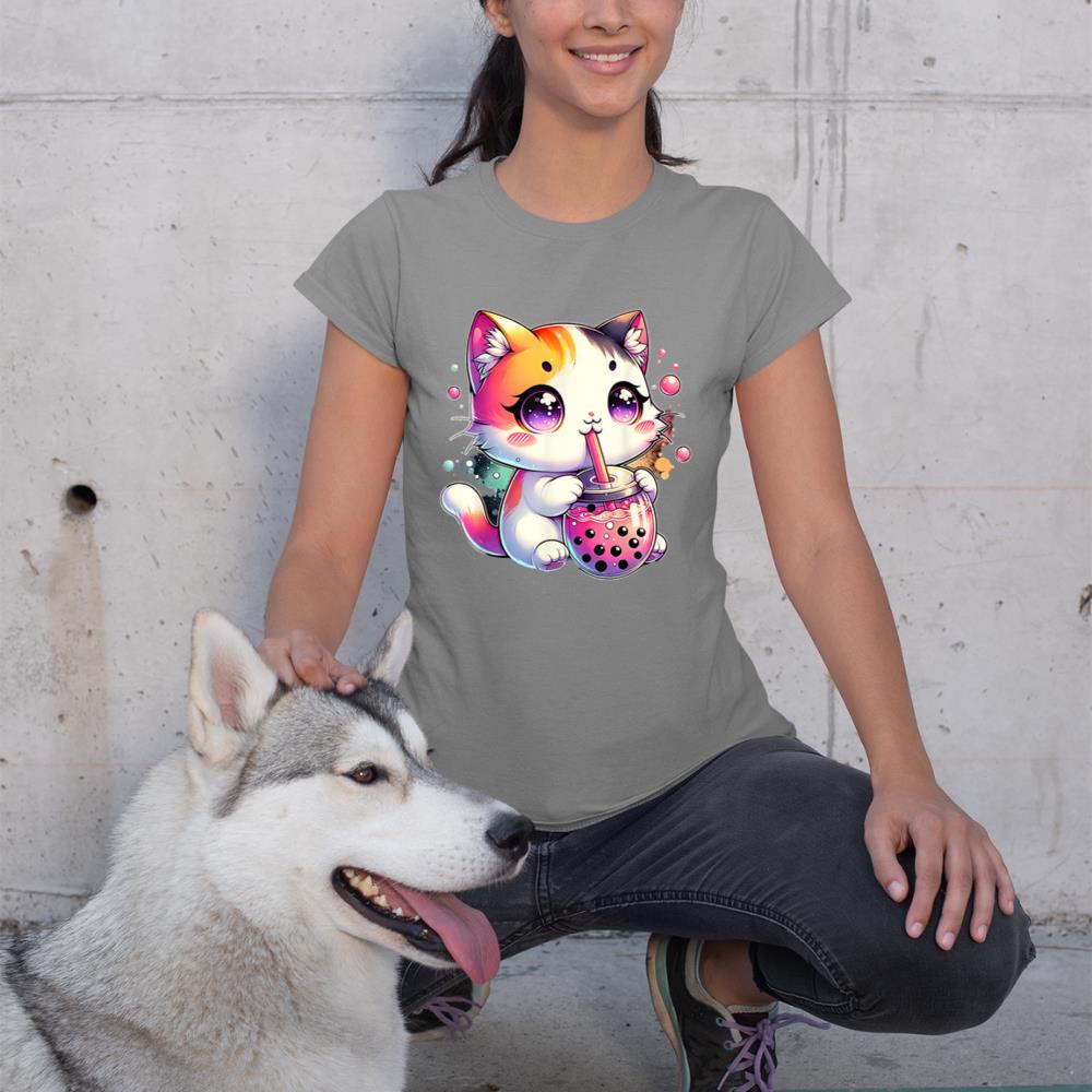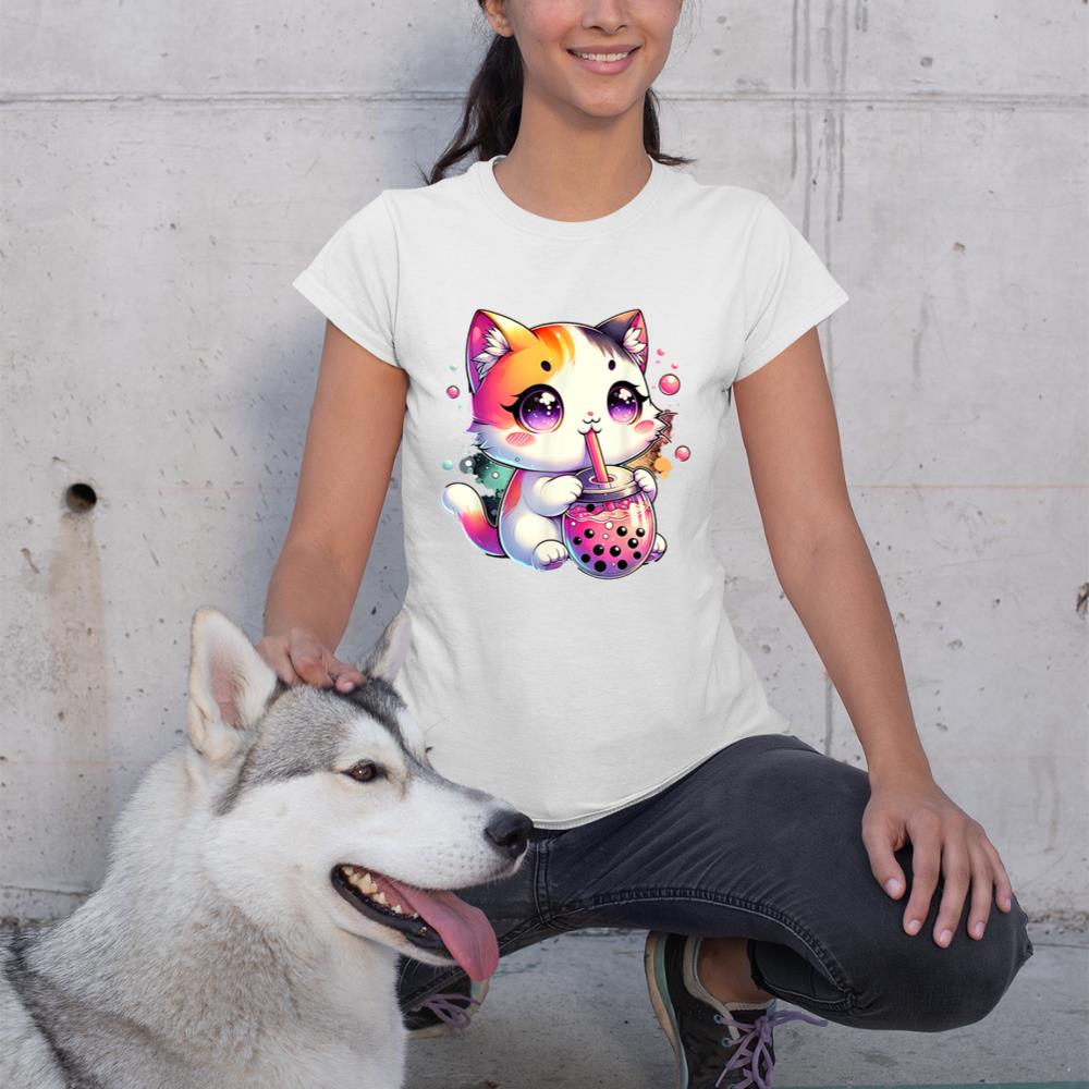 Cat Boba Tea Anime Japanese Kawaii Neko Bubble Tea Cat T-Shirt