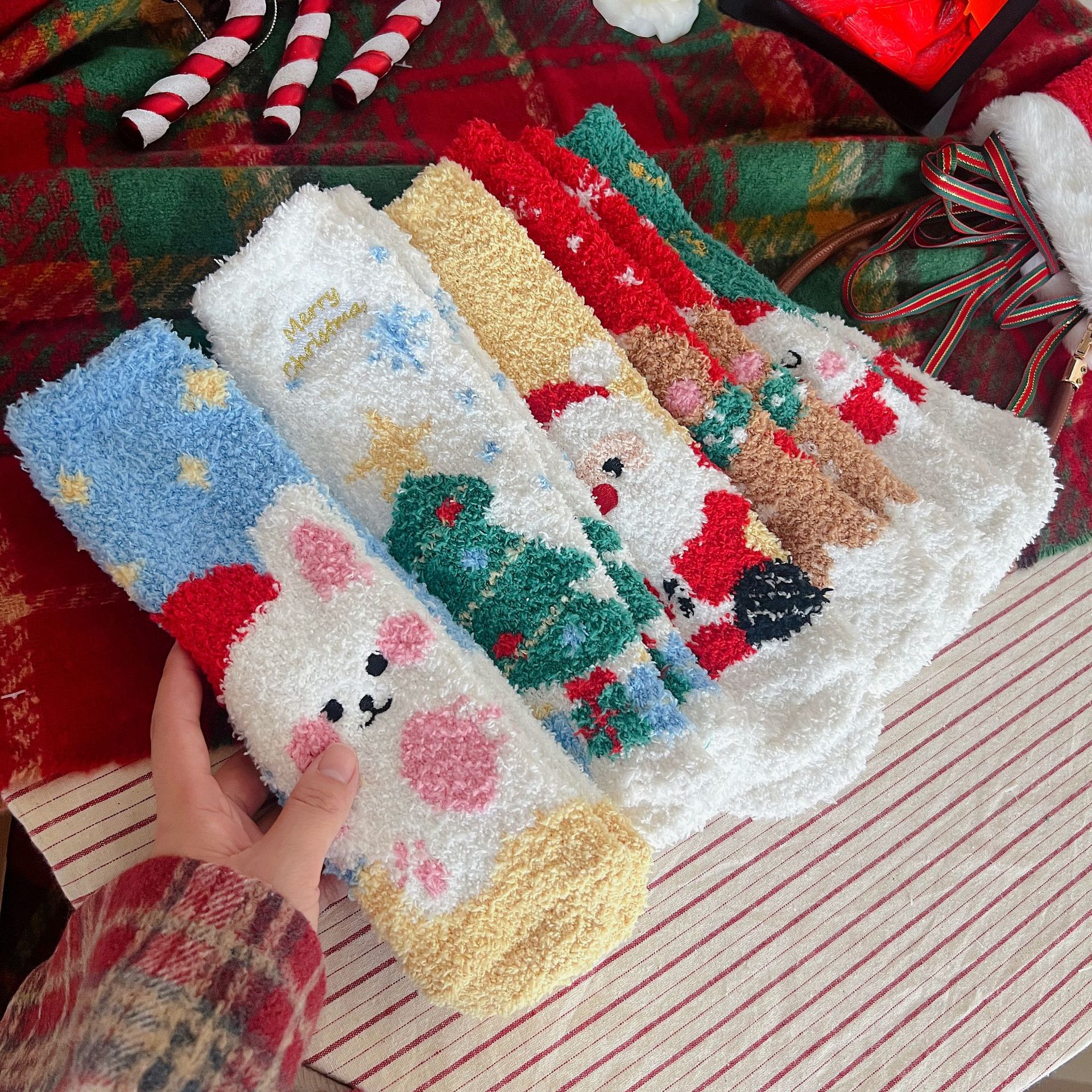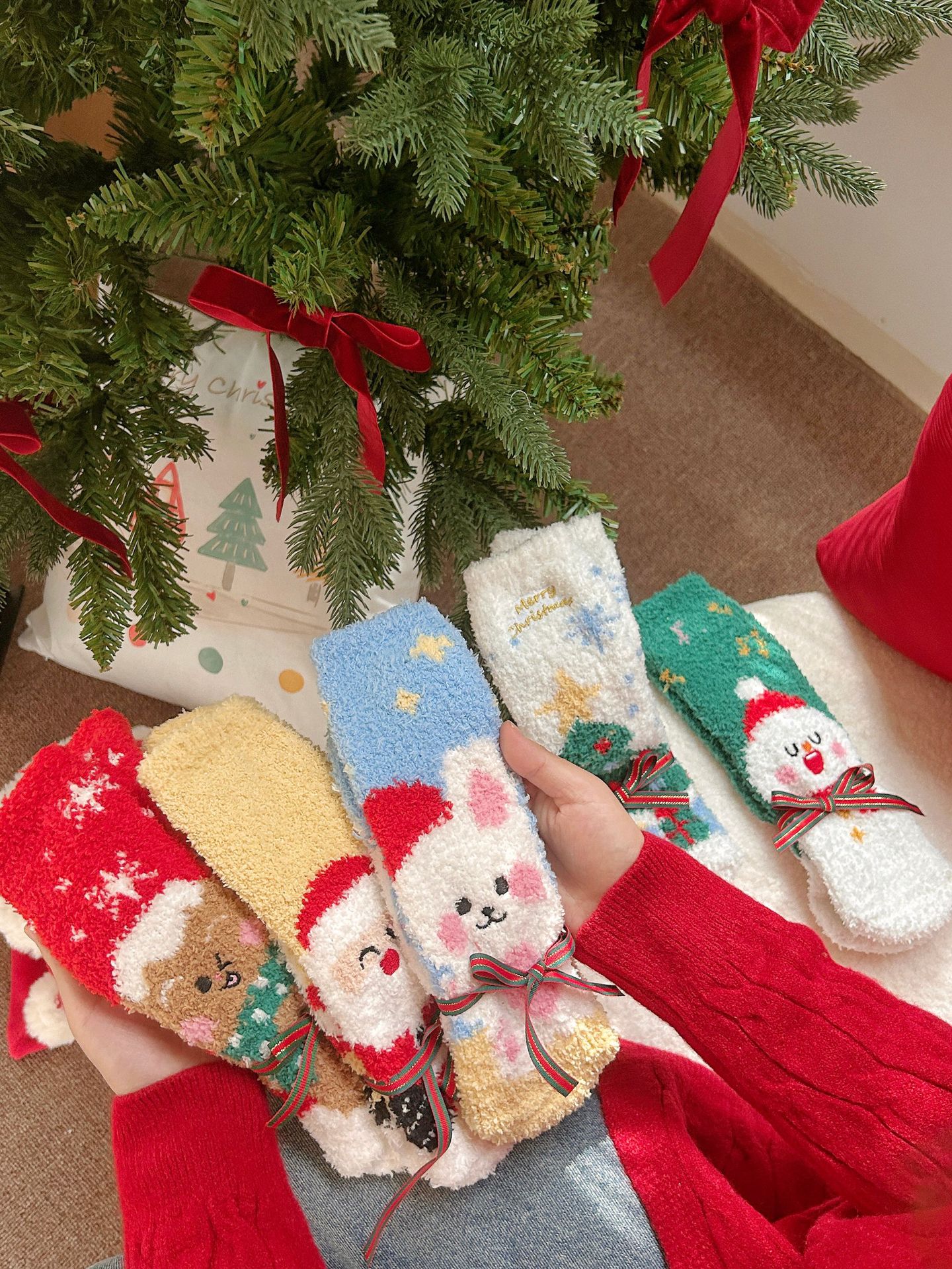 Style: Santa Claus, big snow man, Christmas tree, brown snowman, White Rabbit