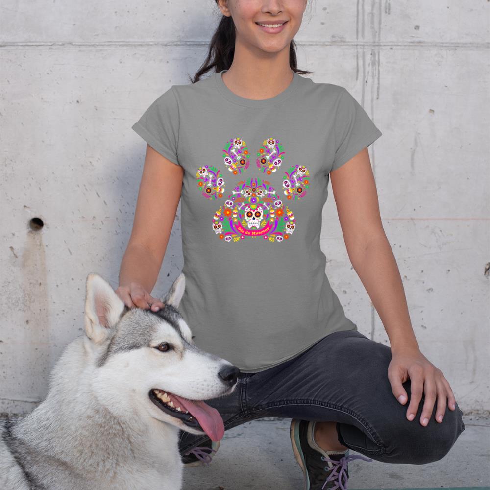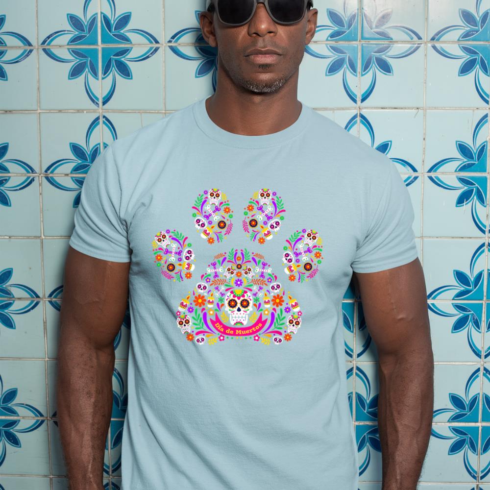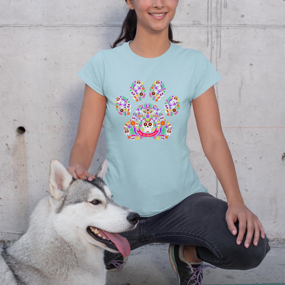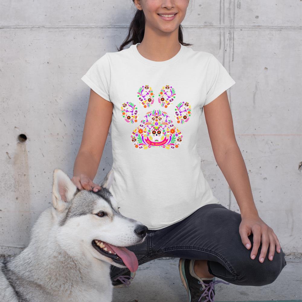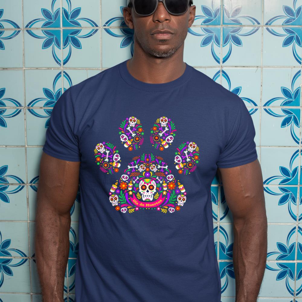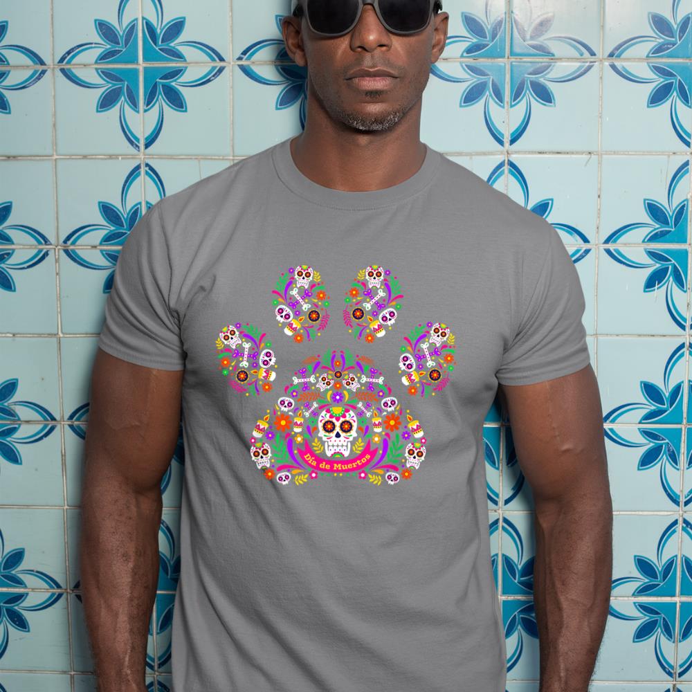 Dog Paw Print Dia De Los Muertos Day Of Dead Dog Sugar Skull T-Shirt