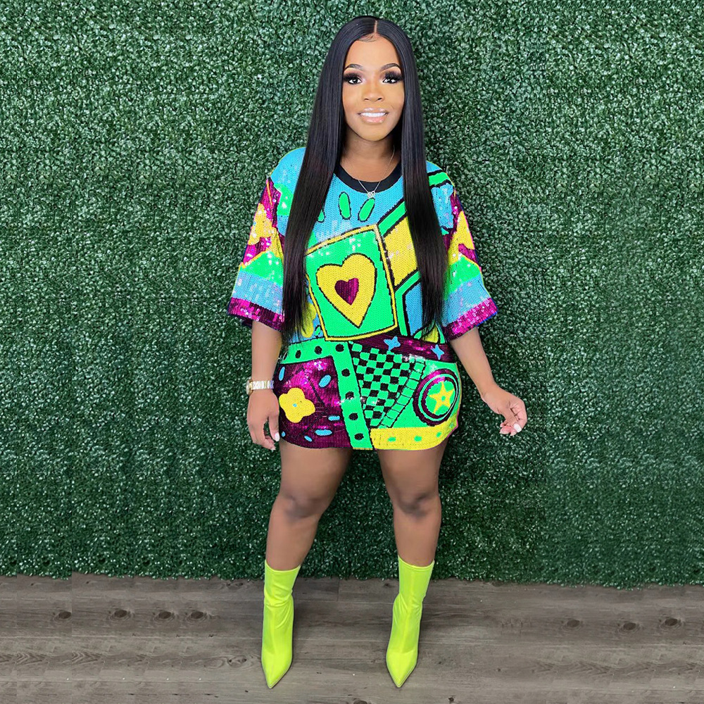 Make a dazzling statement at any event with this sequin-print dress! Designed for comfort and flair, its loose fit ensures effortless movement while the sparkly sequin details catch the light with every step. Whether you’re hitting the club or celebrating a special occasion, this dress turns heads and boosts confidence.
