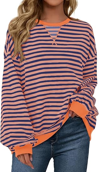- 【What Material We Use】: We believe in providing our customers with the best quality products. Women oversized striped sweatshirt is made of high quality cotton blend, it is super soft, stretchy, breathable and skin-friendly, to keep you comfortable and relaxed all day, suitable for Spring, Summer and Autumn.