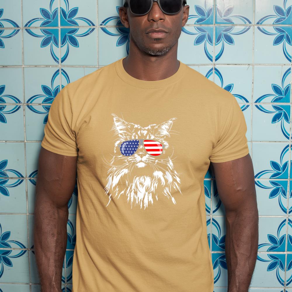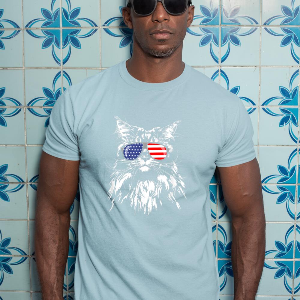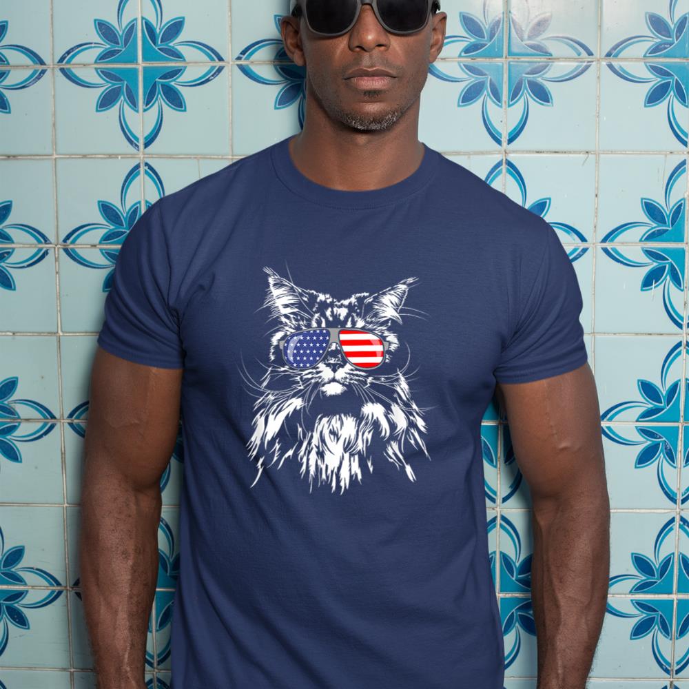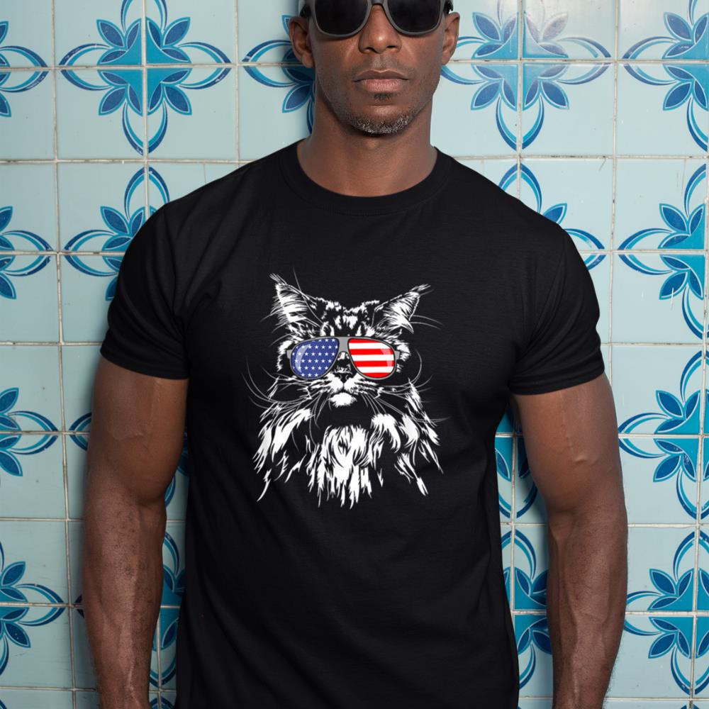 Funny Proud Maine Coon American Flag cat T-Shirt Shirt Tee T-Shirt