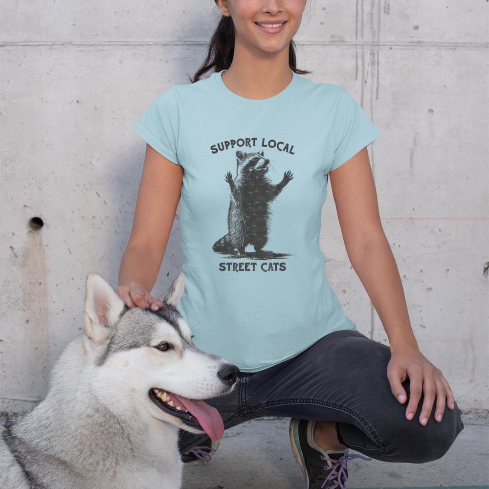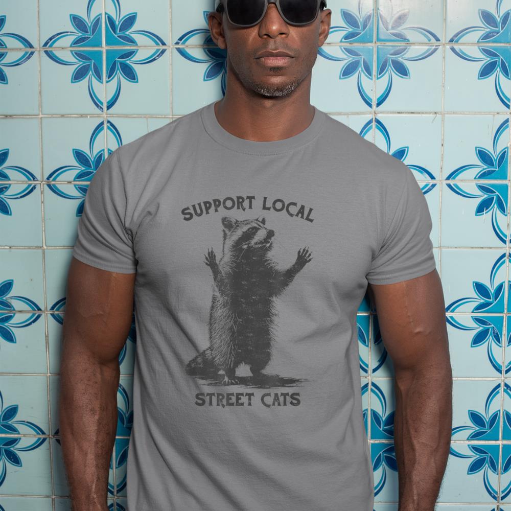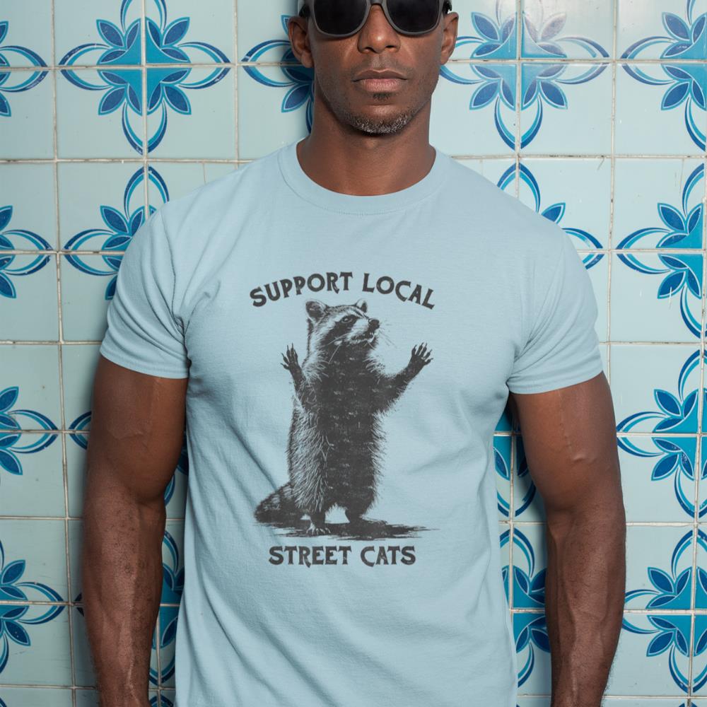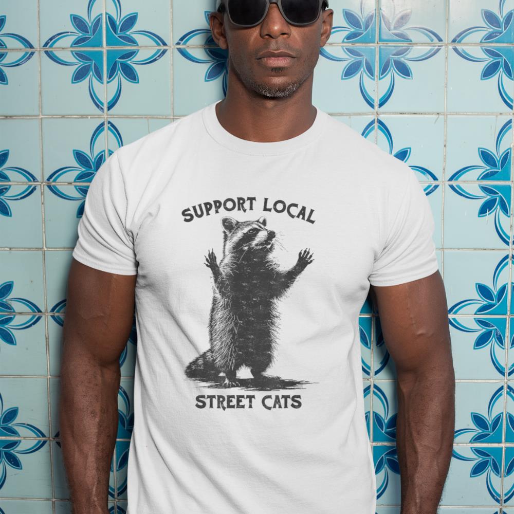 Funny Street Cat Vintage Support Local Street Cats Raccoon T-Shirt