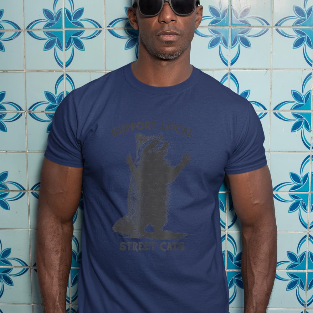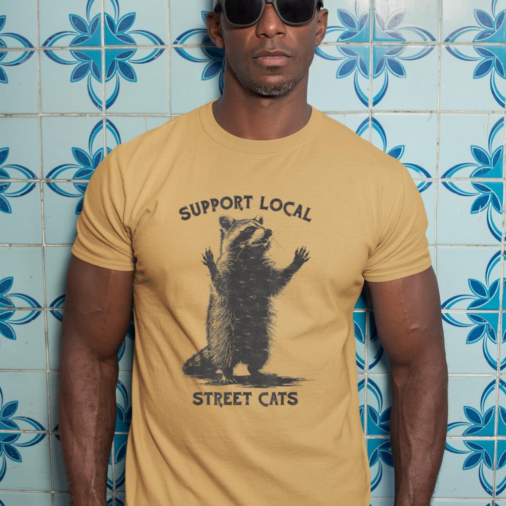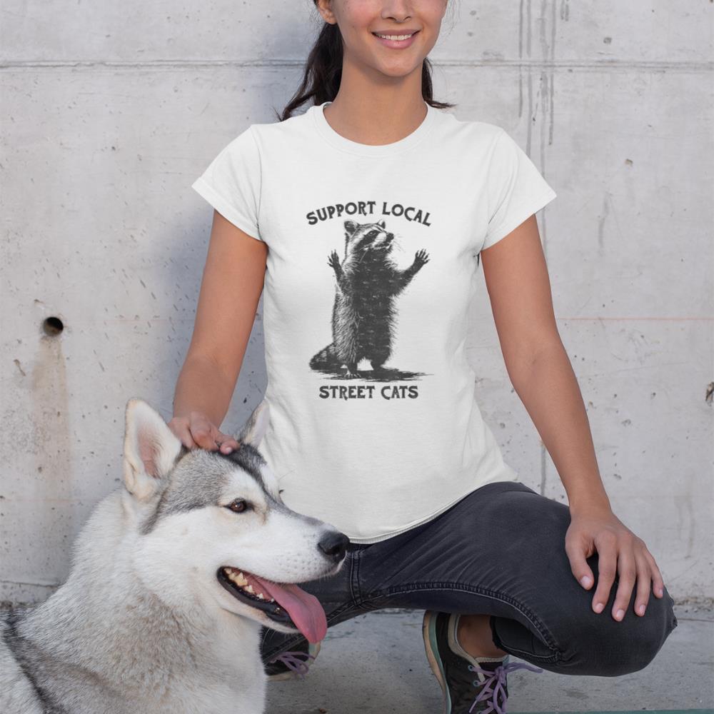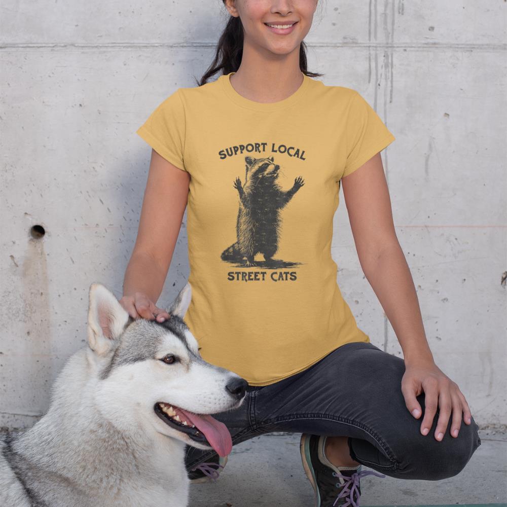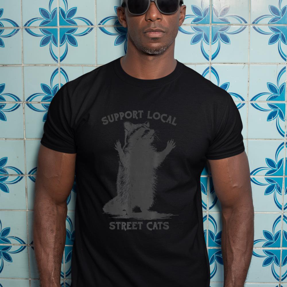 Funny Street Cat Vintage Support Local Street Cats Raccoon T-Shirt
