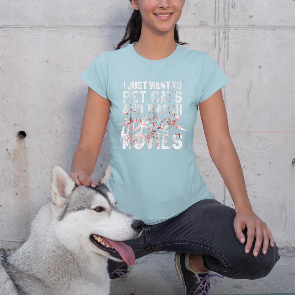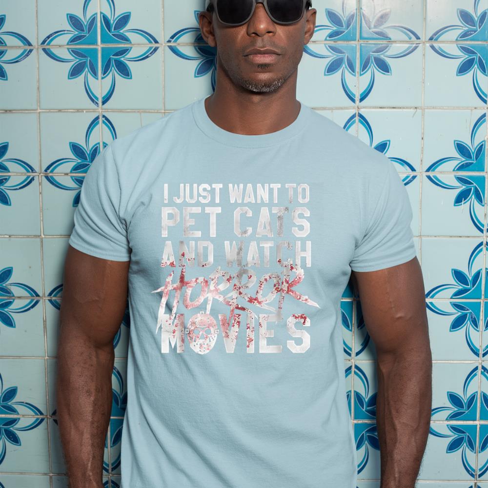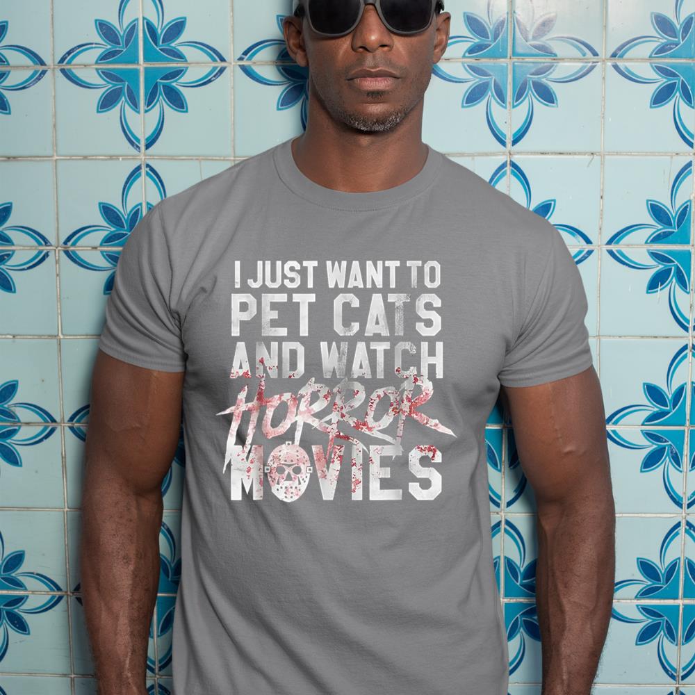 I Just Want To Pet Cats And Watch Horror Movies T-Shirt