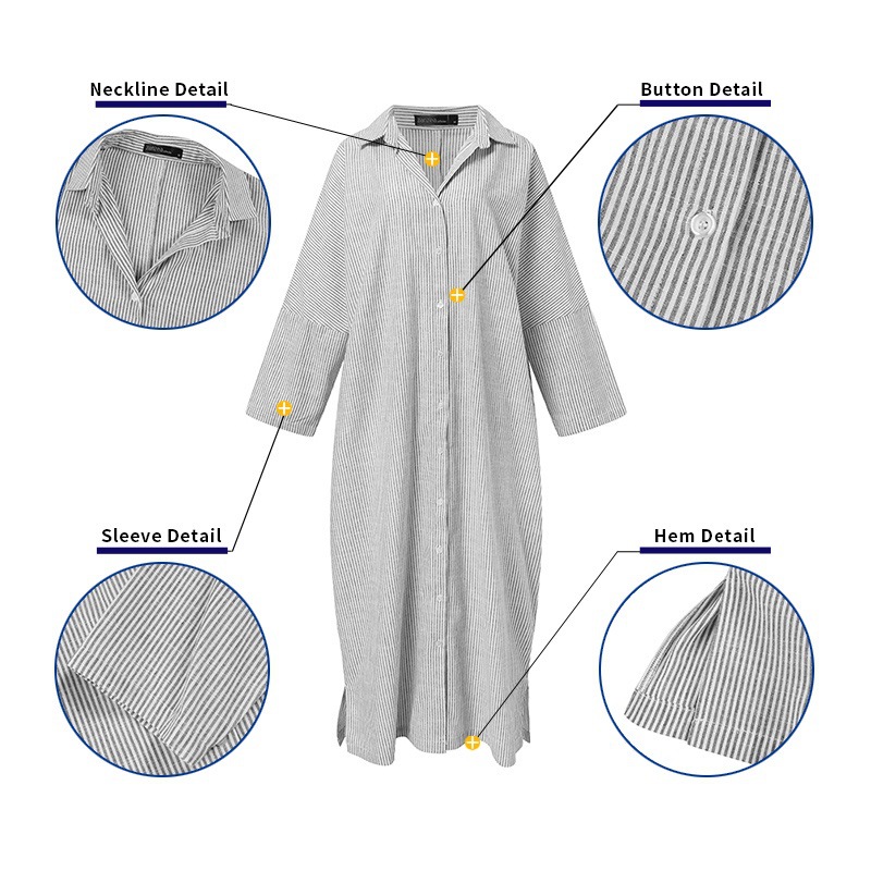 Be the first to review “Ladies’ Casual Cotton And Linen Striped Loose Oversized Irregular Hem Long Dress” Cancel reply