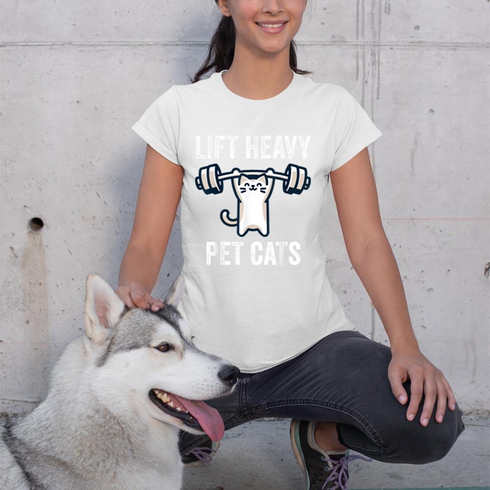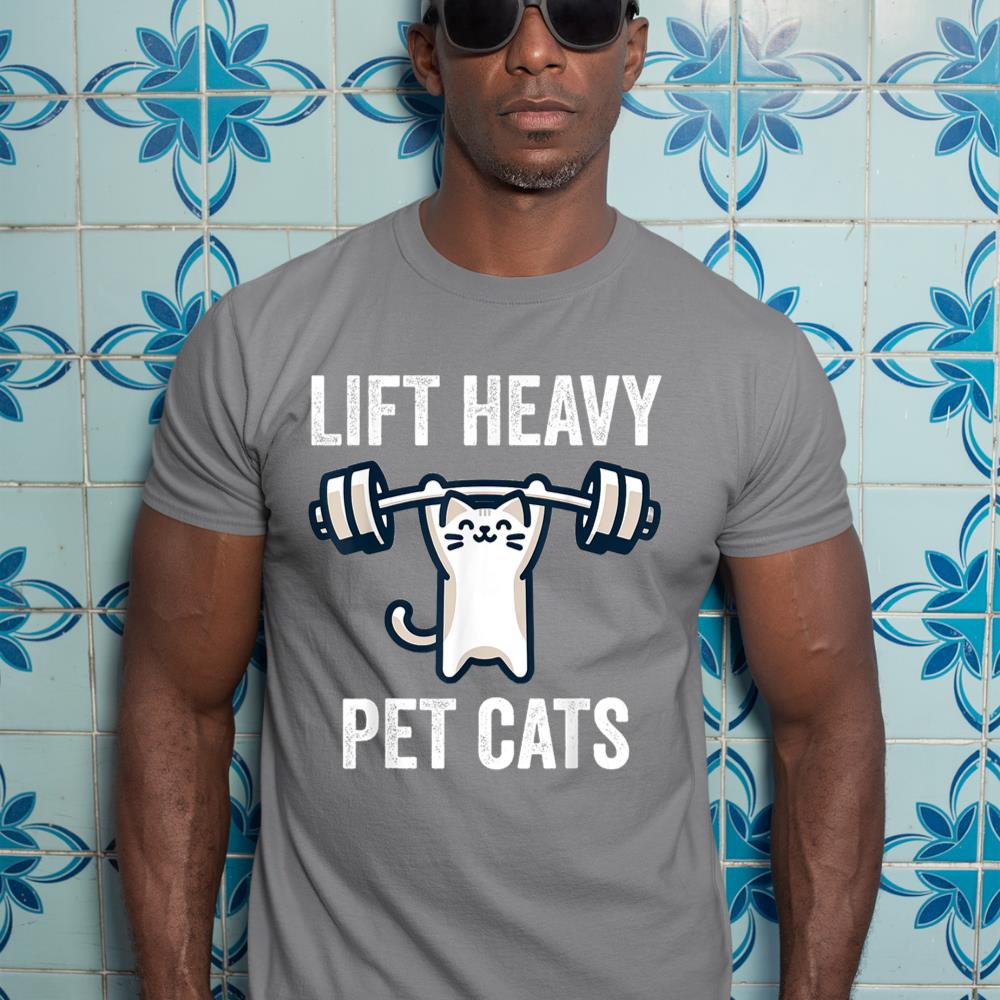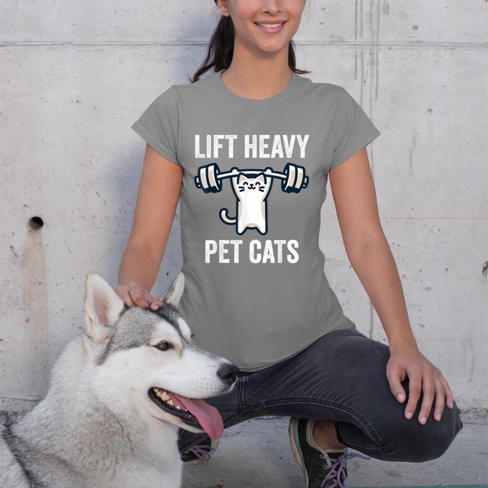 Lift Heavy Pet Cats Funny Gym Workout Weight Lifter T-Shirt