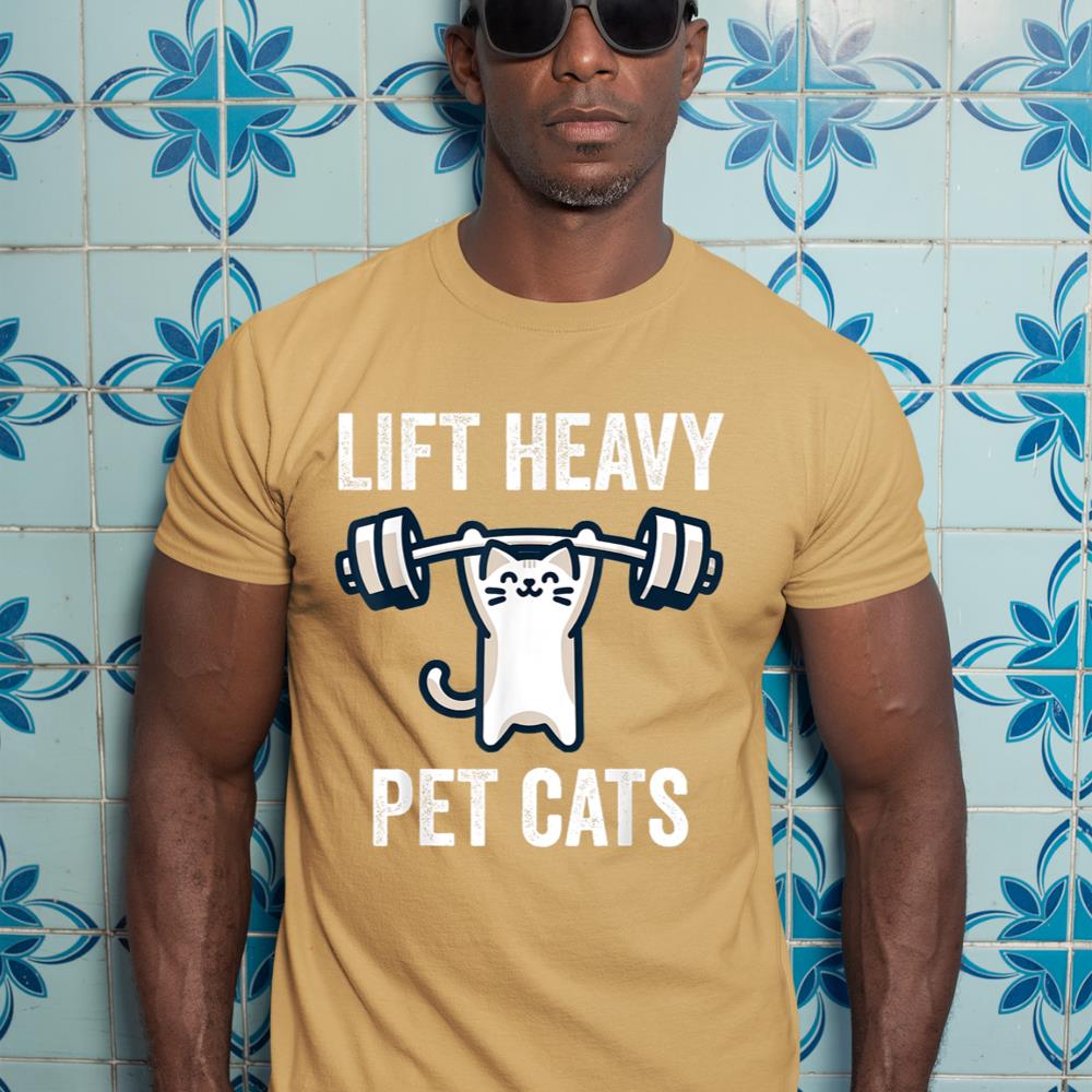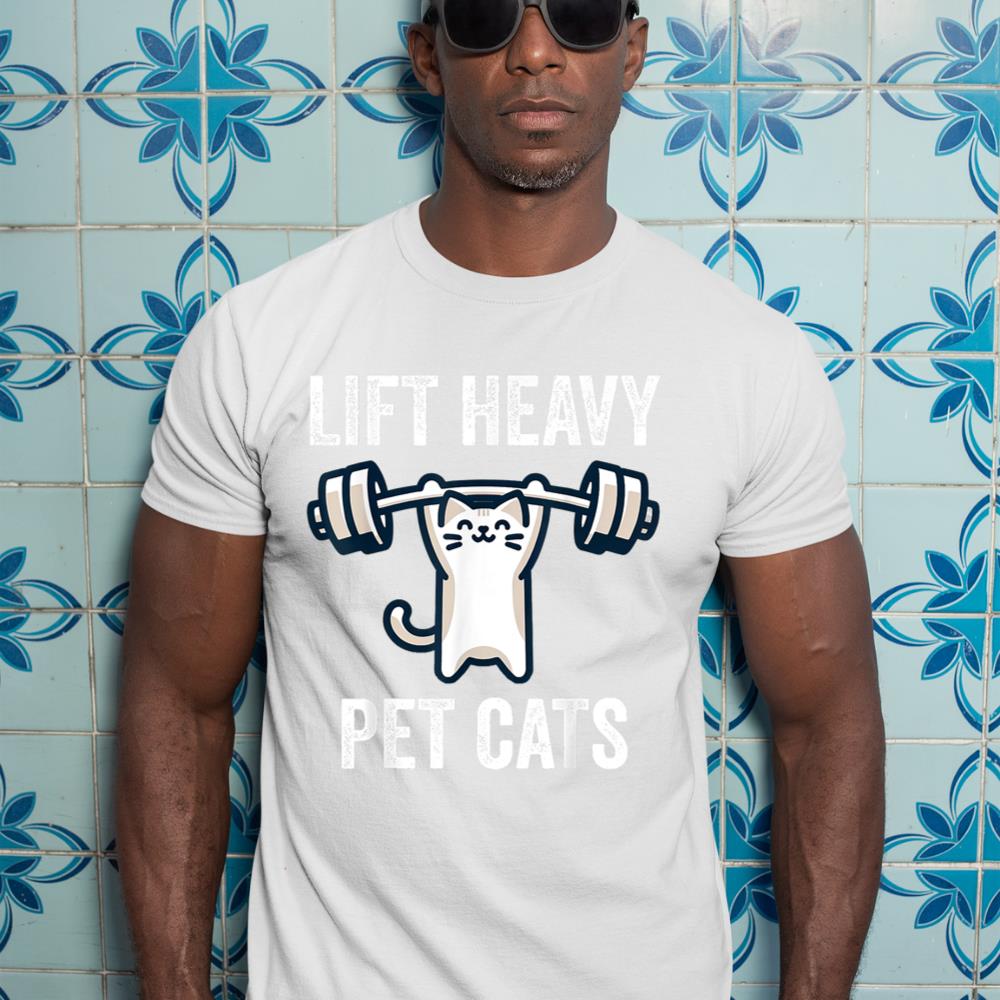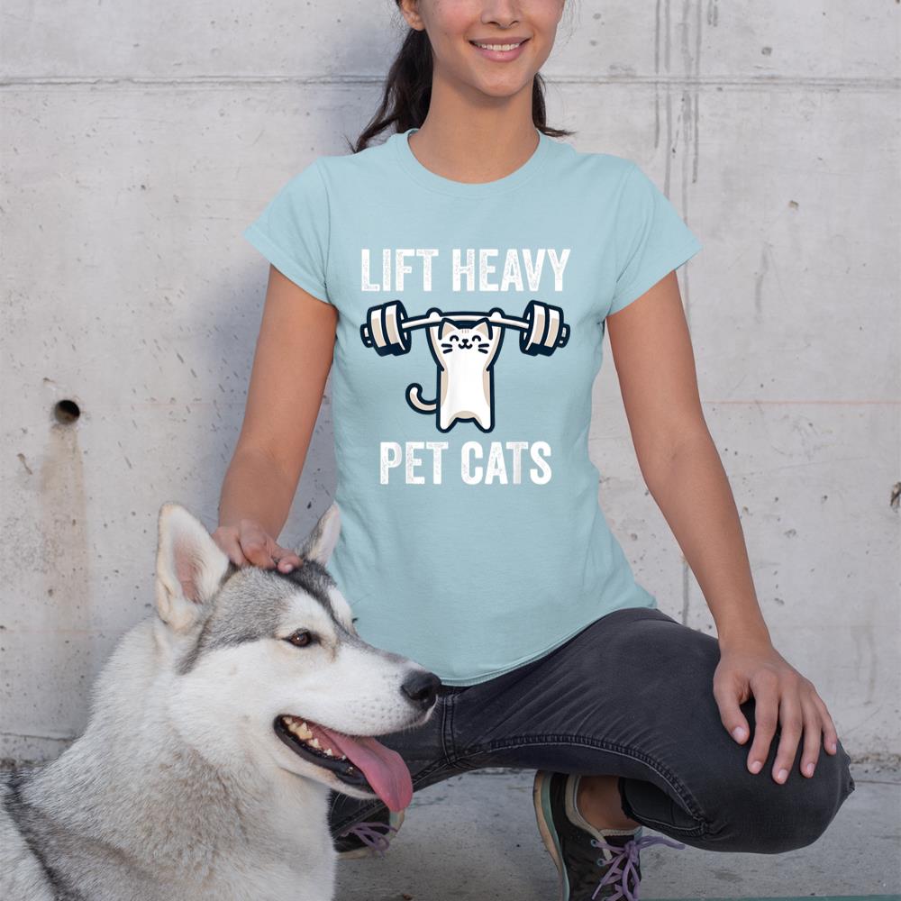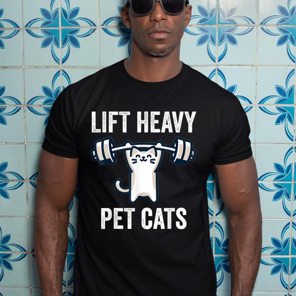 Lift Heavy Pet Cats Funny Gym Workout Weight Lifter T-Shirt