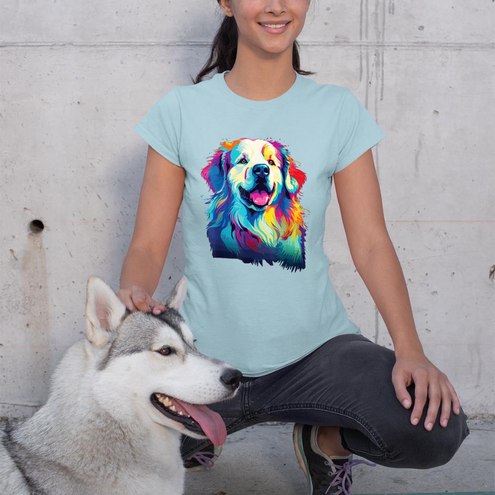 Watercolor Colorful Pyrenean Mountain Dog Great Pyrenees T-Shirt